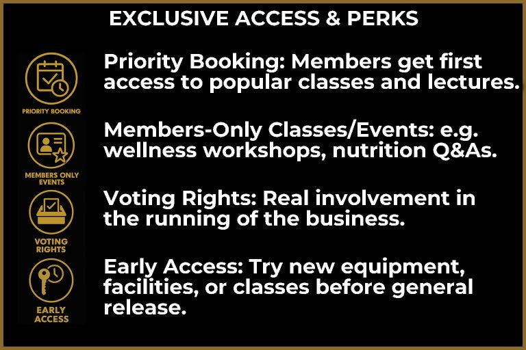 • Members-Only Classes/Events – e.g. wellness workshops, nutrition Q&As, or “members’ open gym night.”