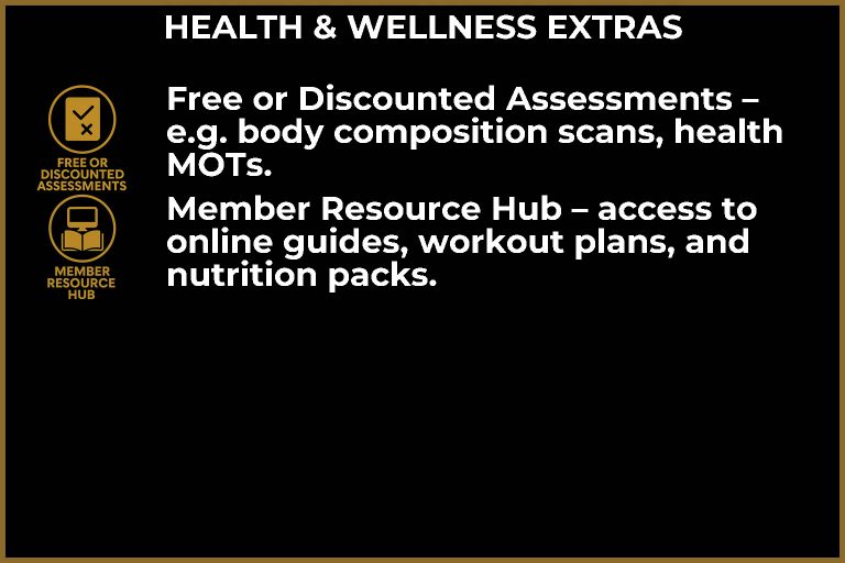 • Member Resource Hub – access to online guides, workout plans, and nutrition packs.