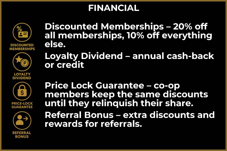 • Price Lock Guarantee – co-op members keep the same discounts until they relinquish their share.