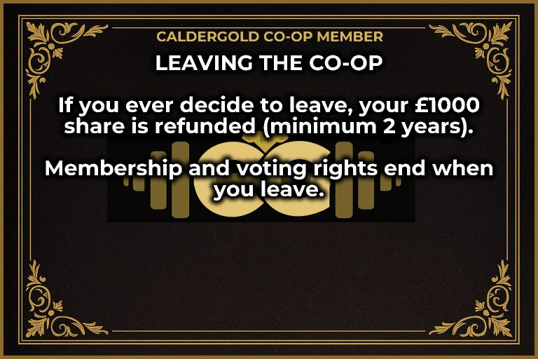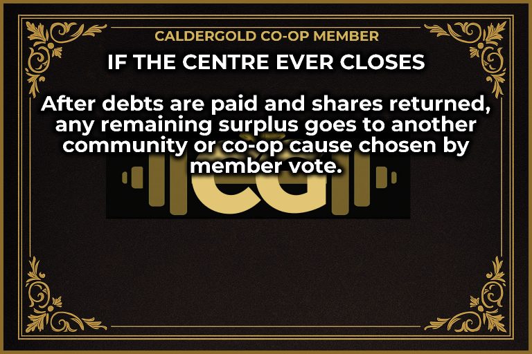 • After debts are paid and shares returned, any remaining surplus goes to another community or co-op cause chosen by member vote.